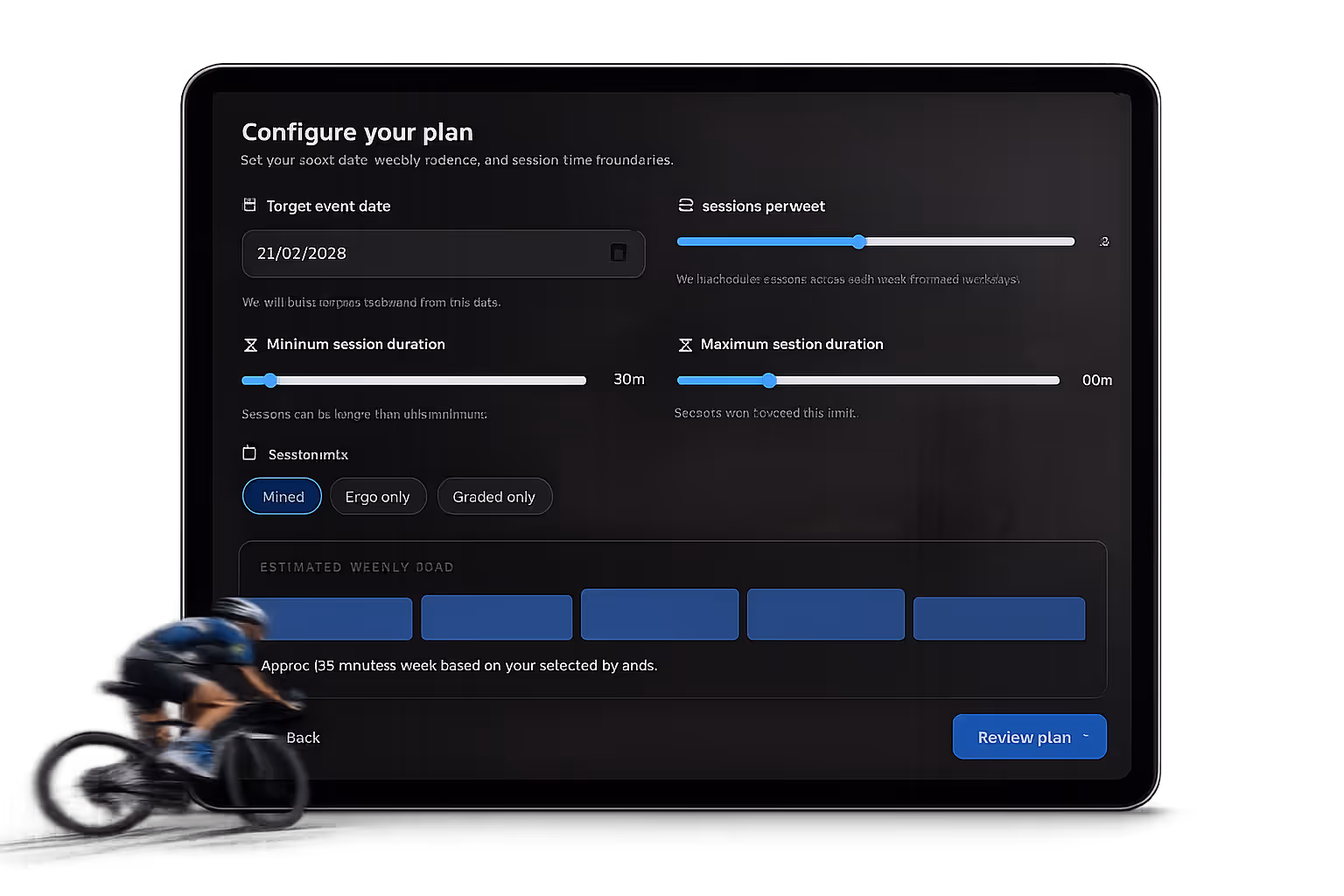 Progressively build fitness with plans tailored to the route you want to ride — not generic workouts.